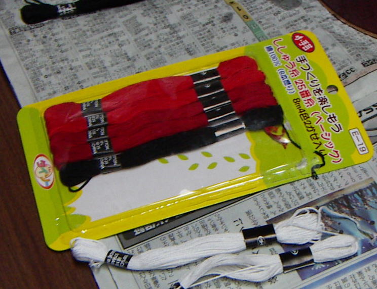 | ◆これはろうそくの芯になる糸です。 ◆100円均一のお店にあります。 ◆溶かすろうそくの高さより長く(10センチ位) 切ります。 ◆ろうそくが固まるまで糸が倒れてこないように わりばしなどにからませておきます。 ◆固まったら糸は2,3センチの長さに切ります。 |