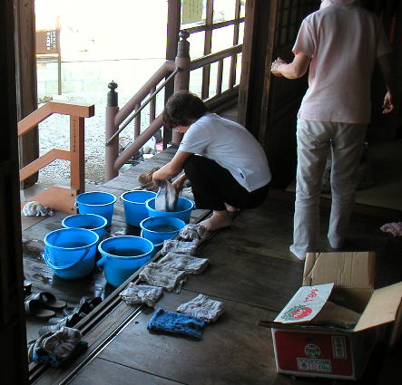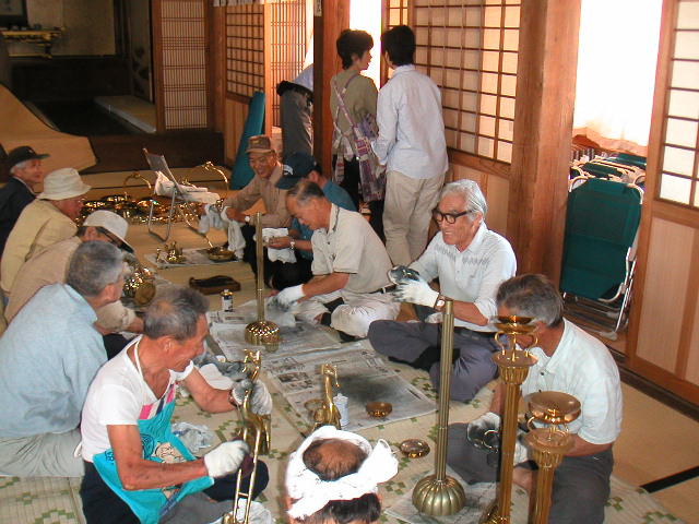 常 讃 寺 報 恩 講 人 夫 ◇報恩講を二週間後に控えて、 年に一度の人夫(にんぶ:門徒総出の大掃除とお磨き)と総会 2003年9月28日