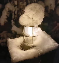 写真:牧師館の玄関ランプにも雪が降り積もっています。