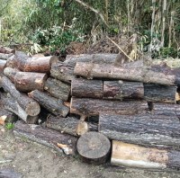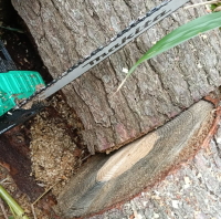 隣家の敷地に倒れ込んでしまった樹高15mをこえる松の樹3本を解体